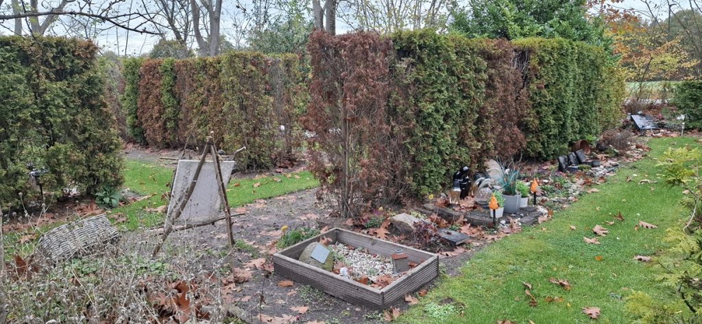 Zoals altijd voelt het goed om op deze manier met liefde en respect voor dit bijzonder plekje te werken. En het resultaat mag er zijn: twee frisse, groene rijen die de rust en het beschermde karakter van de begraafplaats weer mooi versterken.